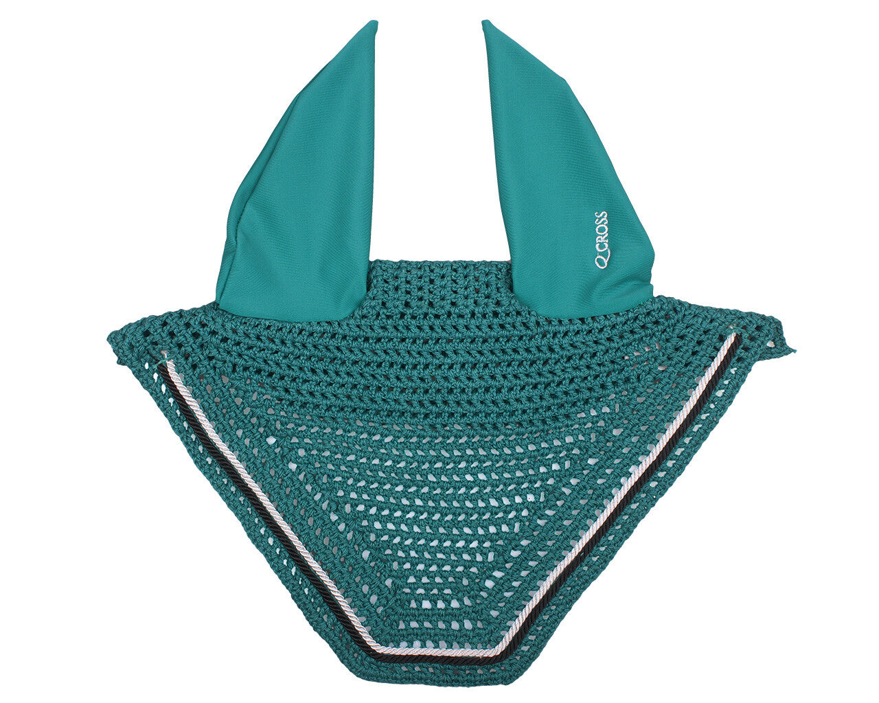 Crochet ear net with elastane ears which completes your Q-Cross outfit. The ear net is decorated with two small cords along the edge. Finished with a Q-Cross embroidery on the left ear.