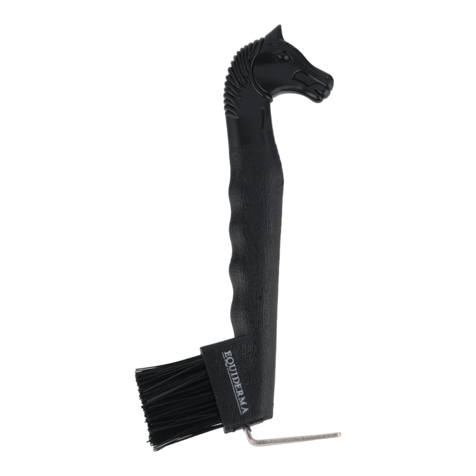 Durable hoof pick featuring stiff bristles and a steel pick for easy hoof cleaning. Designed with a cute horse head shape, because well, it's cute! Use the pick to thoroughly clean the hoof, then use bristles to scrub in our Thrush & Whiteline Treatment!