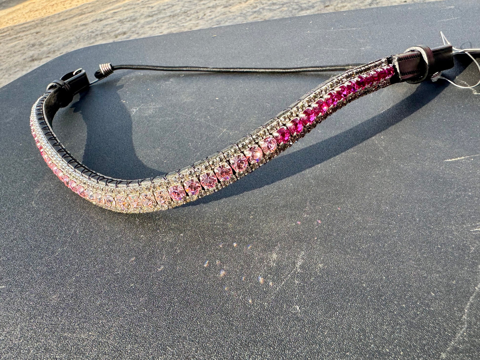 Featuring dazzling premium Preciosa crystals that catch every eye, this browband pairs high-end sparkle with a budget-friendly price. Crafted from supple black leather for comfort and durability, it boasts a clever quick-change Velcro design—no snaps to break, just effortless swapping. The Amore is named for my amazing friend Kiara and her personal horse, Amore, who are stunning in everything PINK! This ombré design changes colors from bold fuchsia to blush to pale rose.
