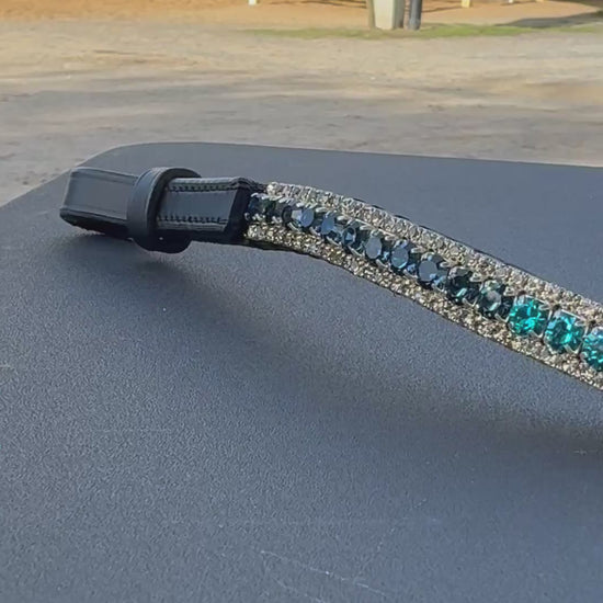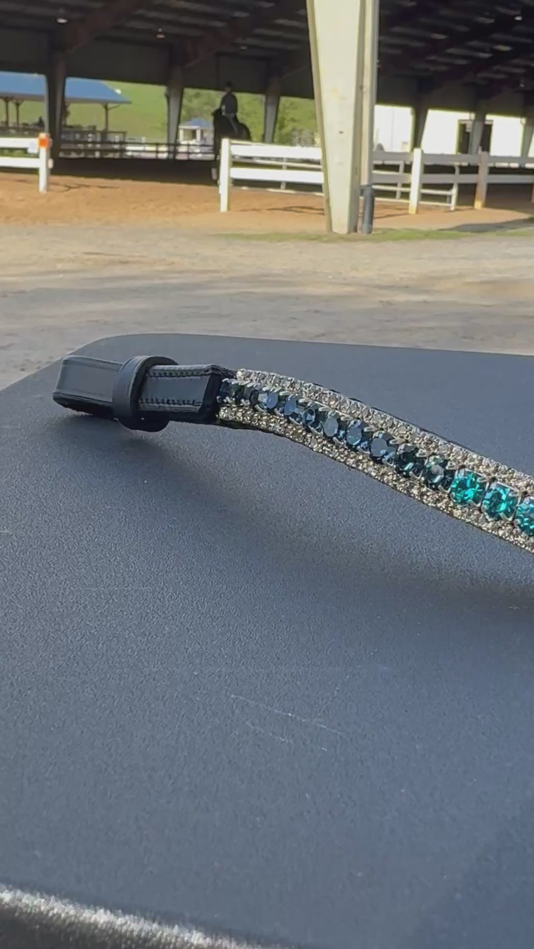 Featuring dazzling premium Preciosa crystals that catch every eye, this browband pairs high-end sparkle with a budget-friendly price. Crafted from supple black leather for comfort and durability, it boasts a clever quick-change Velcro design—no snaps to break, just effortless swapping. The Orion is named for my personal horse who looks stunning in everything blue. This ombré design changes colors from navy to aqua to sky blue.